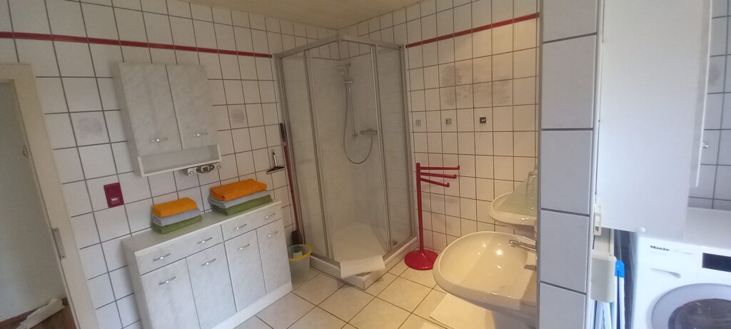 In der gemütlichen und gut ausgestatteten Wohnküche finden Sie genügend Platz für Ihre Mahlzeiten. Zudem verfügt Ihre Ferienwohnung über ein sehr großes Badezimmer mit Dusche, Badewanne, Doppelwaschbecken und Waschmaschine.